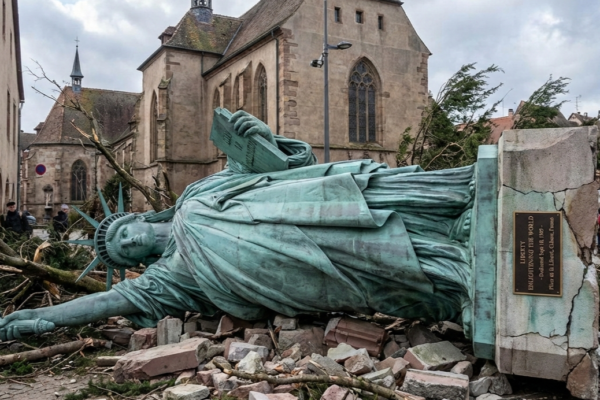 Strong Winds Topple Statue Of Liberty – It’s Not The One In New York