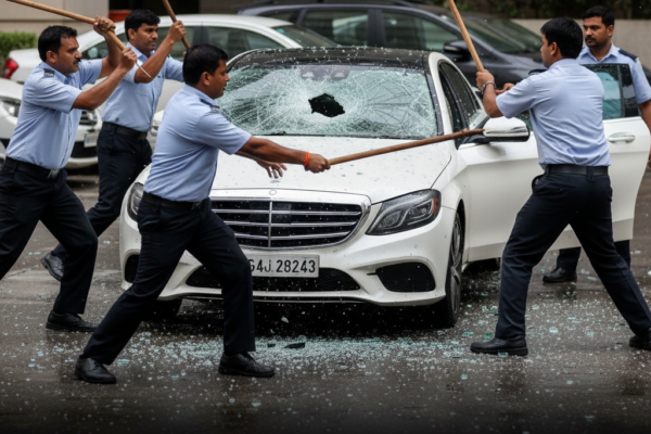 Video Shows Guards Smashing Mercedes Windscreen and Windows With Sticks in Gurugram A shocking video showing security guards vandalising a…